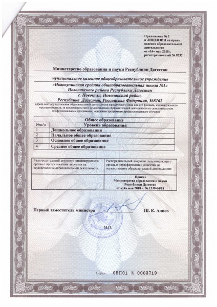 Муниципальное казенное общеобразовательное учреждение "Новокулинская средняя общеобразовательная школа №1" (МКОУ "Новокулинская СОШ №1")